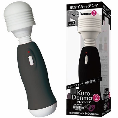 某番組で一躍話題になったクロデンマがパワーアップして再登場!さらに使いやすく進化を遂げた、ハンディサイズのコードレス電マ。3cm程だったヘッド部分は4.5cmにサイズアップ!フェアリーミニ(k00003)用などのアタッチメントも併用可能になりました。更に底部にあったスイッチはスライド式としてサイドに設置、1人でも2人でも使いやすさを増してプレイしやすくなった優秀電マです。単三電池×4本使用(電池は付属しません)。