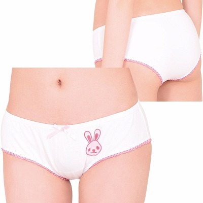 <EROX>ラブリーなうさちゃんプリント付き♪素朴な雰囲気に癒やされるレディースコットンショーツ。●やさしい肌触りの綿混素材●フロントにウサギプリント●ちょこんと控えめなピンクリボン●脚ぐりをぐるりとピコットレースで加工●ヒップを優しく包むフルバック。シンプルだけどインパクトは抜群!深めの履き心地でしっかりフィットしてくれる安心デザインのランジェリーです。