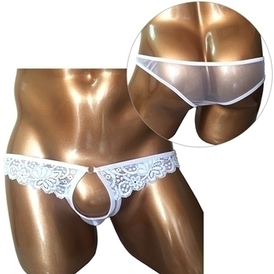 開放感バツグン!男のシンボルを魅せつける竿出しホールレースショーツです♪レースとメッシュ生地だから全部スケスケ!締め付け感の苦手な方は是非どうぞ♪お洗濯の際は、優しく手洗いするか、網ネットに入れて洗濯してください。