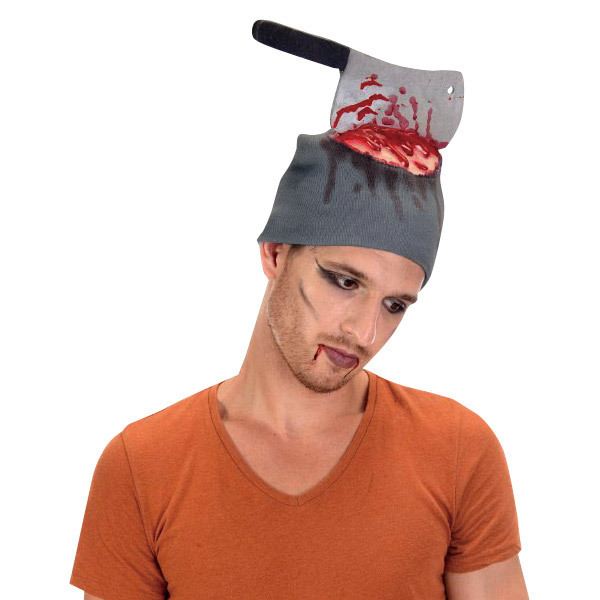 ●帽子上部に刺さった大きな斧付き●地肌&血のり加工で痛々しさ倍増●男女共にOKのフリーサイズ。
