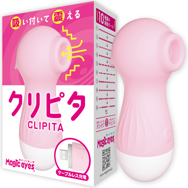 吸い付いて震えるクリピタは、シリコン素材で柔らかい触感とケーブルレスで簡単充電が特徴の吸引グッズ。