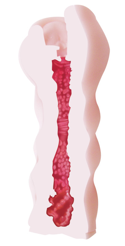 拒むように狭い入り口は舌まで再現!内部はツブツブが密集し、ムスコにねっとりと吸い付きます。