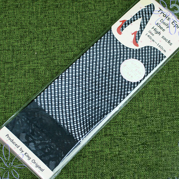 【在庫限り!大特価】嬉しいプチプラ価格♪履き心地抜群なTrois Epri(トロアエプリ)のレース付き細メッシュニーハイソックス。