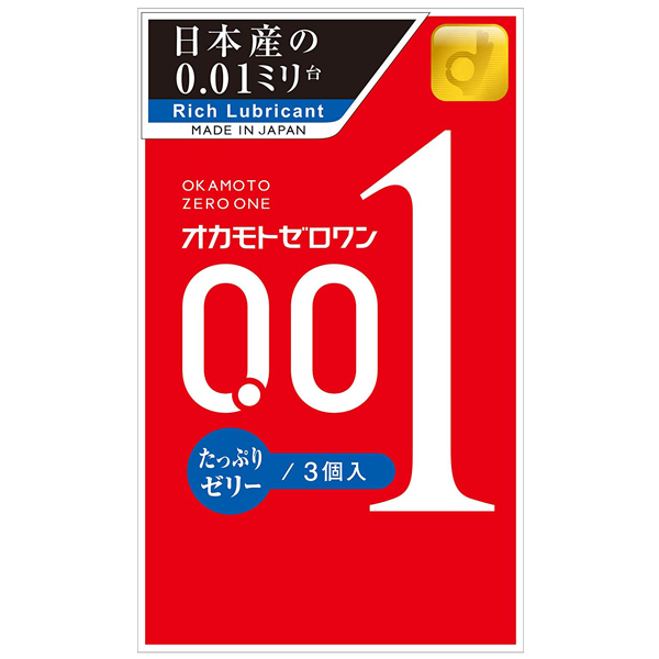 HOME > コンドーム > 薄い・厚い > 【オカモト史上最薄0.01】オカモト ゼロワン (たっぷりゼリー) 3個入